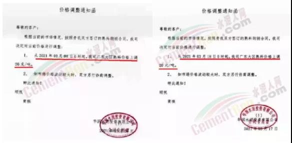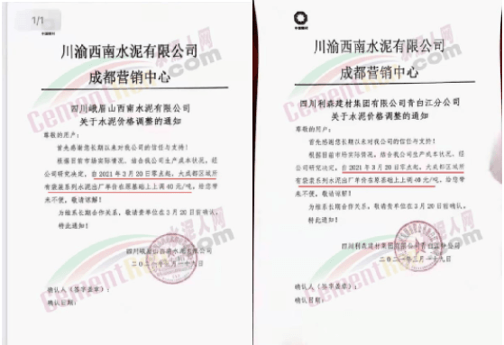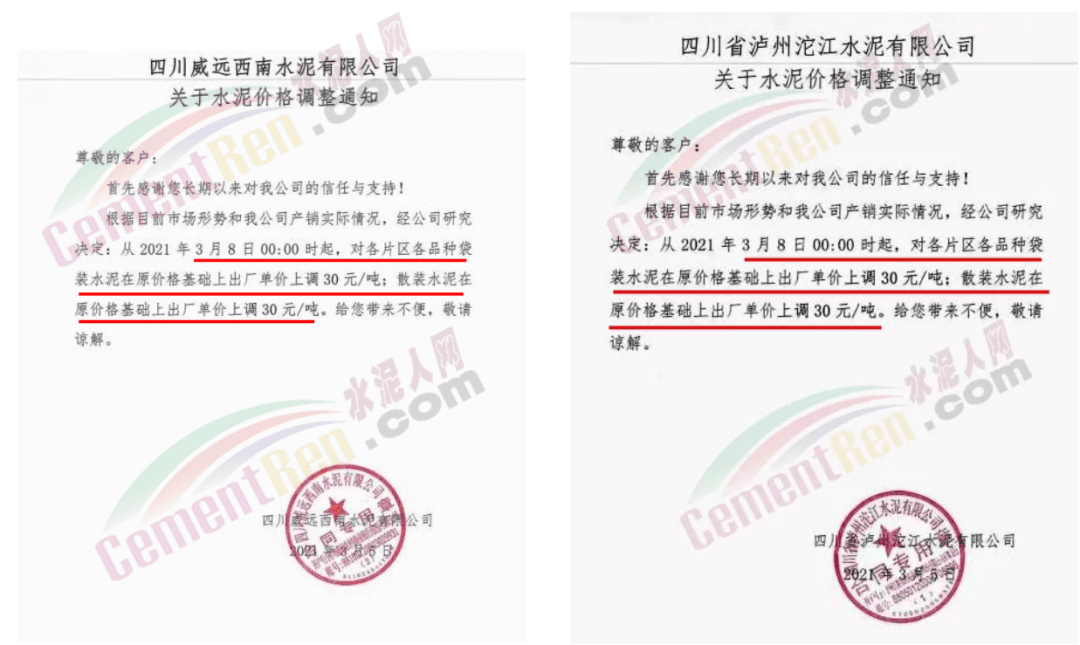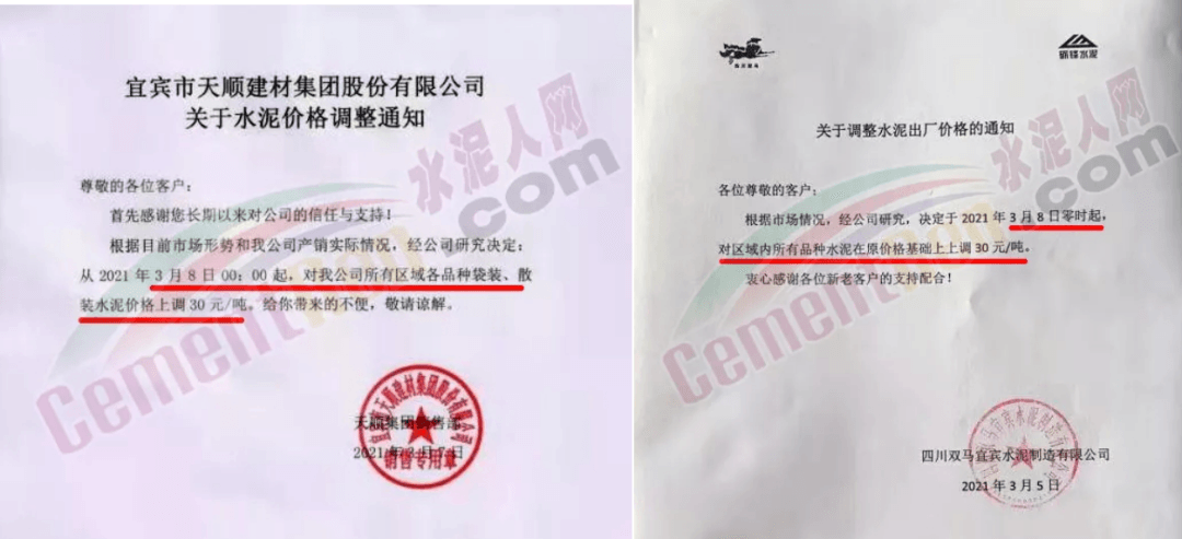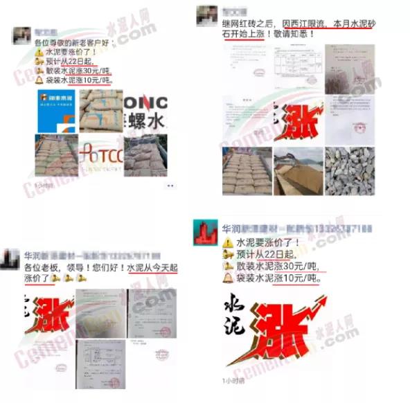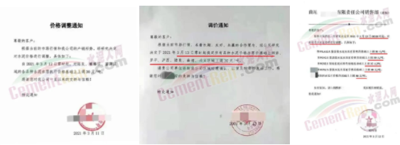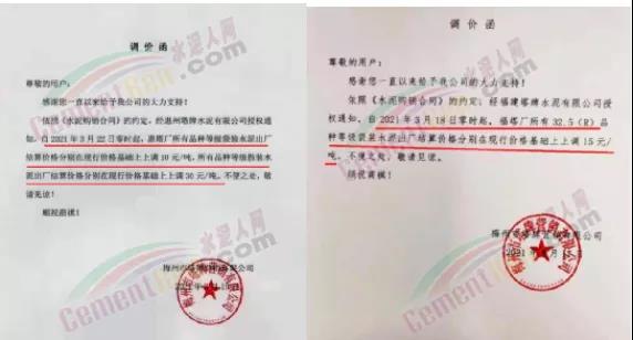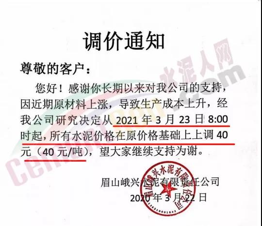 同時(shí),下游經(jīng)銷(xiāo)商也集體發(fā)通知告知客戶(hù)水泥漲價(jià)的消息。