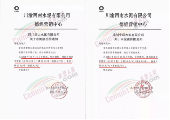 據(jù)水泥人網(wǎng)了解,西南地區(qū)的本輪漲價(jià)是從本月中旬開(kāi)始的。西南水泥旗下企業(yè)自3月18日起陸續(xù)通知上調(diào)水泥價(jià)格20-40元/噸。