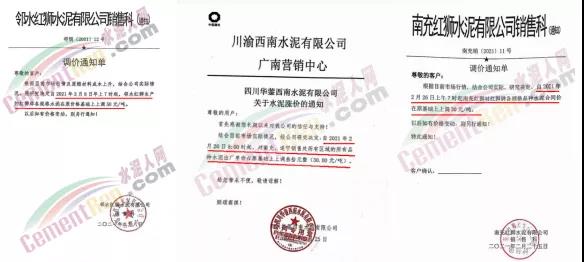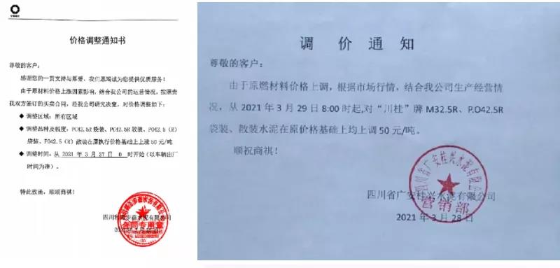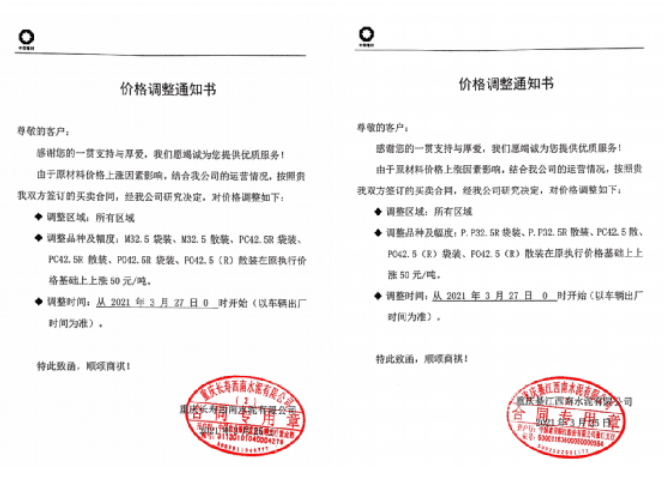 重慶市兩次調(diào)價,50多家水泥企業(yè)價格上調(diào)超100元/噸