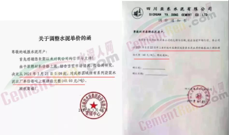 3月中旬以來四川區(qū)域西南水泥、亞東水泥、峨勝水泥等多家主要品牌企業(yè)陸續(xù)通知上調(diào)水泥價格30-40元/噸。