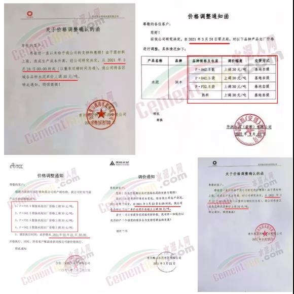 青?;ブ饒A水泥通知自3月29日起水泥價格上調(diào)60元/噸。
