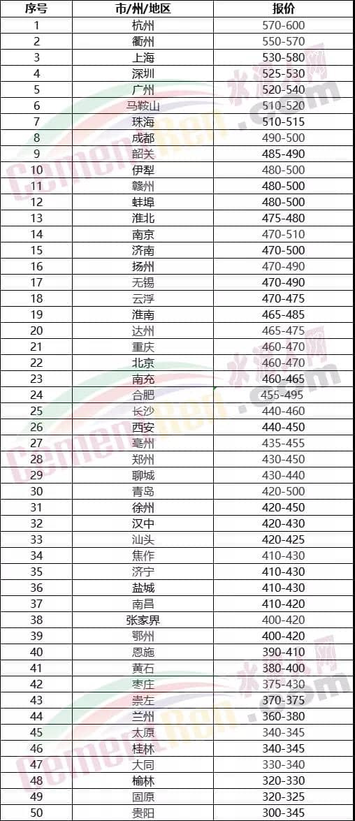 同期,廣西壯族自治區(qū)華潤、臺泥、路寶水泥等品牌企業(yè)通知自25日起各品種水泥價格上調(diào)20元/噸。
