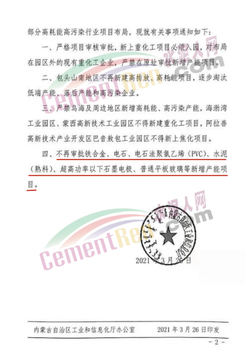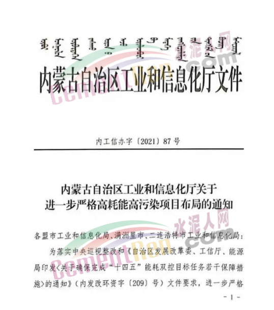 日前,內(nèi)蒙古自治區(qū)工業(yè)和信息化廳發(fā)布《關(guān)于進(jìn)一步嚴(yán)格高耗能高污染項(xiàng)目布局的通知》稱,為落實(shí)中央巡視整改和《自治區(qū)發(fā)展改革委、工信廳、能源局印發(fā)<關(guān)于確保完成“十四五”能耗雙控目標(biāo)任務(wù)若干保障措施>的通知》(內(nèi)發(fā)改環(huán)資字(209)號(hào))文件要求,進(jìn)一步嚴(yán)格部分高耗能高污染行業(yè)項(xiàng)目布局,不再審批鐵合金、電石、電石法聚氯乙烯(PVC)、水泥(熟料)、超高功率以下石墨電極、普通平板玻璃等新增產(chǎn)能項(xiàng)目。