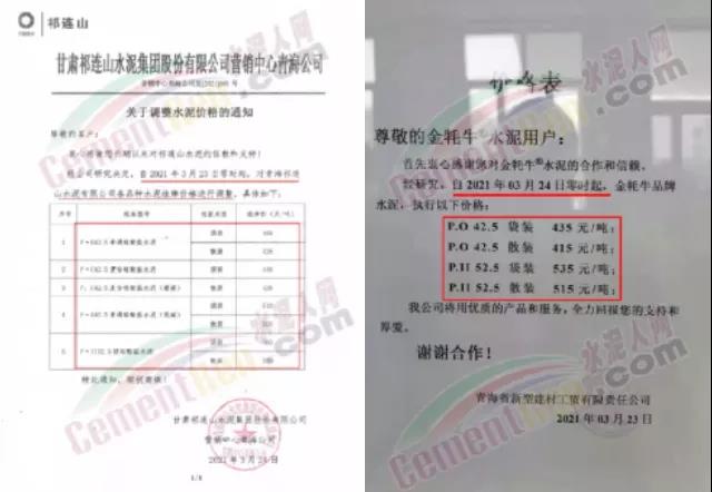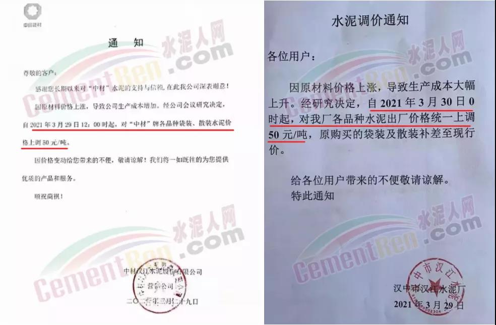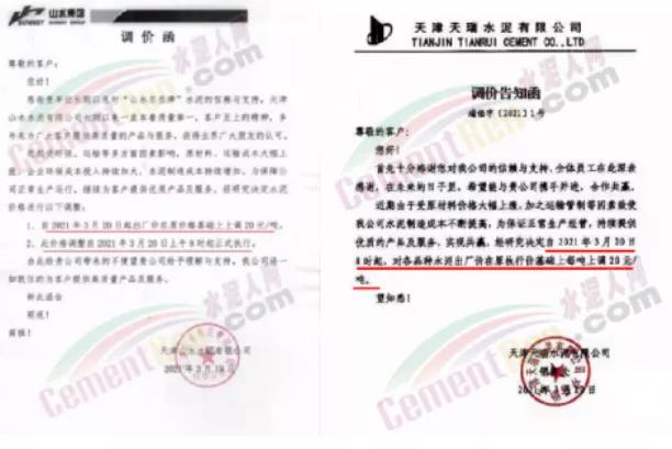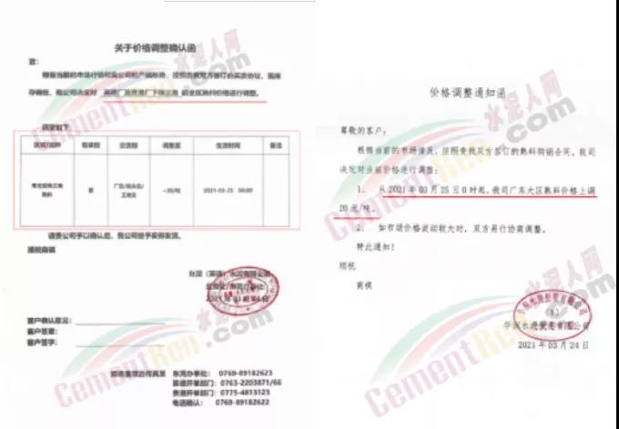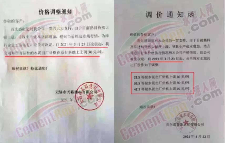 依據(jù)周邊市場(chǎng)價(jià)格,結(jié)合我公司實(shí)際情況,決定自2021年3月31日上午8:00開始,我公司2號(hào)線、3號(hào)線熟料價(jià)格上調(diào)20元/噸。