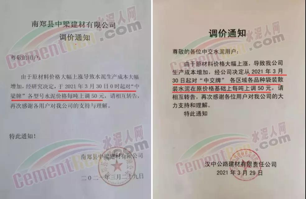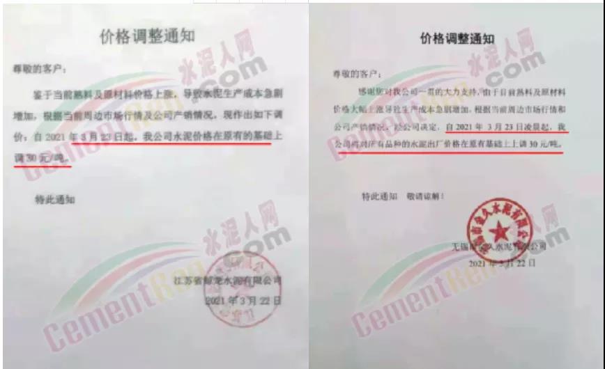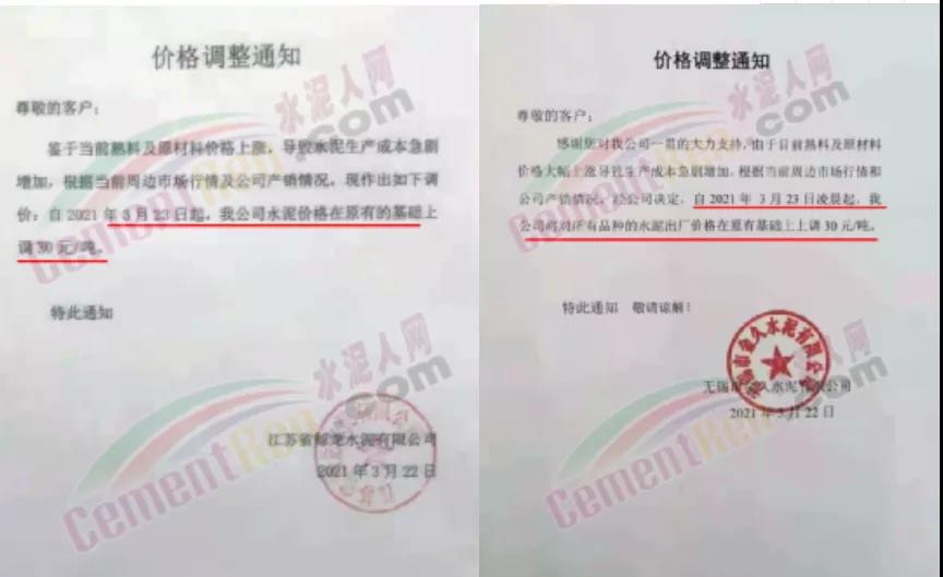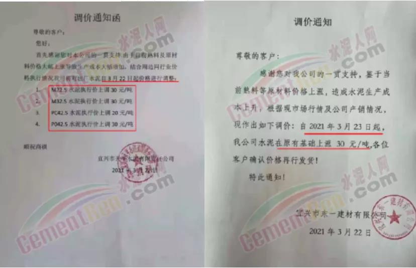 水泥調(diào)價(jià)通知