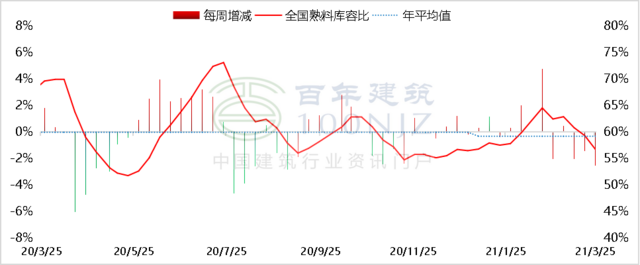 截至4月8日,全國(guó)平均熟料庫(kù)容比為56.52%,較上周小幅上升0.09%。
