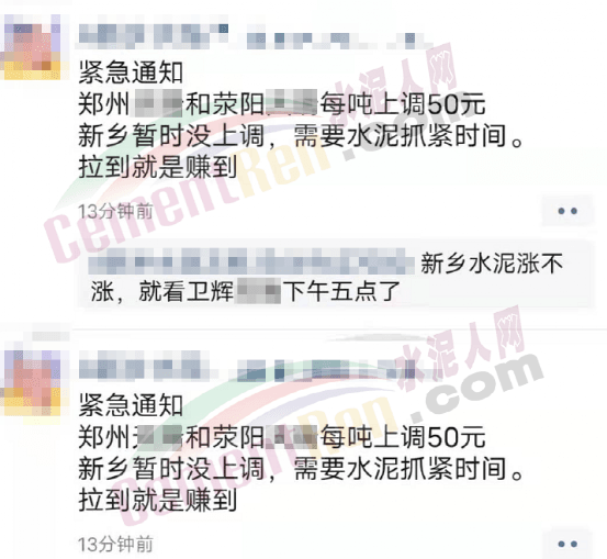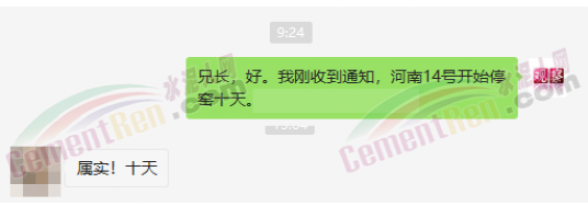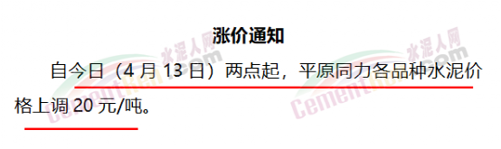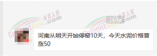 與此同時,經銷商收到通知河南區(qū)域水泥價格自15日起上漲50元/噸的消息,且要求經銷商于今日(15日)早8點前確認完畢。
