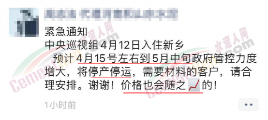 據水泥人網了解,隨著中央生態(tài)環(huán)境保護督察組的入駐,河南新鄉(xiāng)區(qū)域建材經銷市場傳出4月15日左右到5月中旬,環(huán)保相關機構的管控力度增大,屆時或將停產、停運,預計水泥價格將有所調整的消息。據稱漲價是因熟料庫存低位,且已處于停限產狀態(tài),窯企不再對外銷售熟料,熟料大量缺貨疊加環(huán)保加嚴管控,企業(yè)制造成本增加導致。