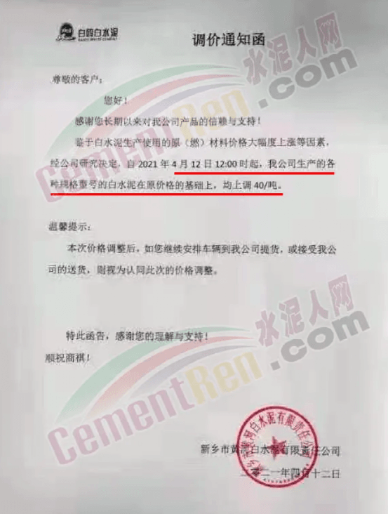 14日中午前后河南鄭州、平頂山、洛陽、南陽、安陽等區(qū)域部分企業(yè)陸續(xù)通知上調水泥價格20-50元/噸。