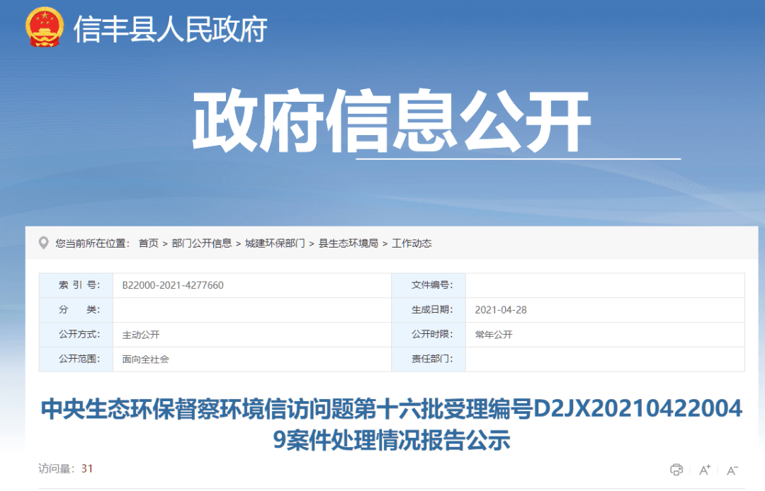 2021年4月30日在信豐縣人民政府網(wǎng)站等媒體公開(kāi)。