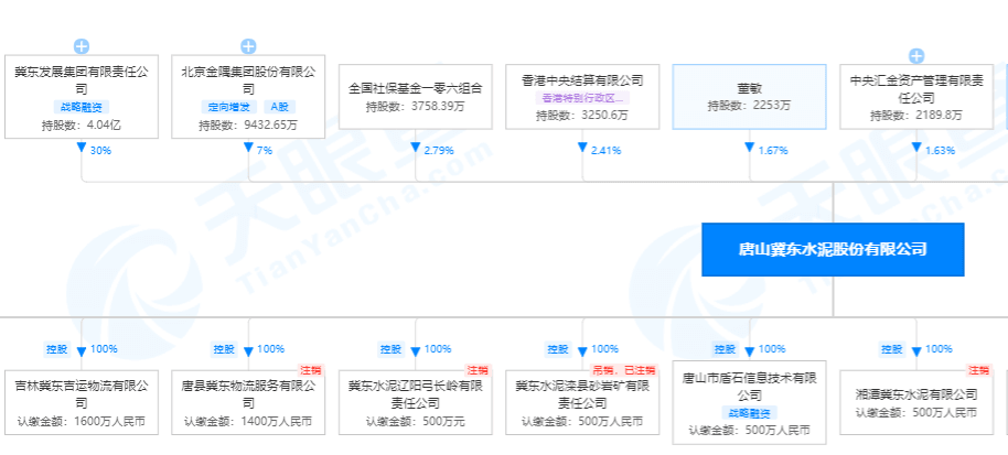 據(jù)查詢,金隅集團(tuán)直接持有冀東水泥7%的股份,同時,金隅集團(tuán)控股冀東發(fā)展集團(tuán),后者持有冀東水泥30%股份。