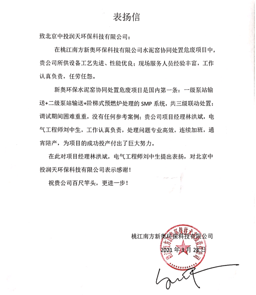 作為項目之本,履約質(zhì)量、工期質(zhì)量、服務(wù)保障質(zhì)量發(fā)展已成為潤天環(huán)保新的金字招牌。近日,南方水泥、中聯(lián)水泥、杰夏環(huán)保、新奧環(huán)保、礦峰集團等多家單位向潤天環(huán)保致函、致電,對于潤天項目的整體水準,以及現(xiàn)場項目經(jīng)理團隊的敬業(yè)精神與專業(yè)水平,均提出了高度贊揚。
