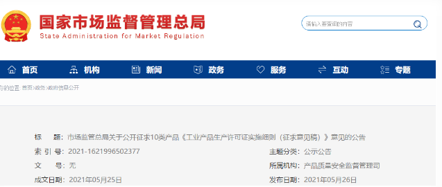 市場(chǎng)監(jiān)管總局關(guān)于公開征求10類產(chǎn)品