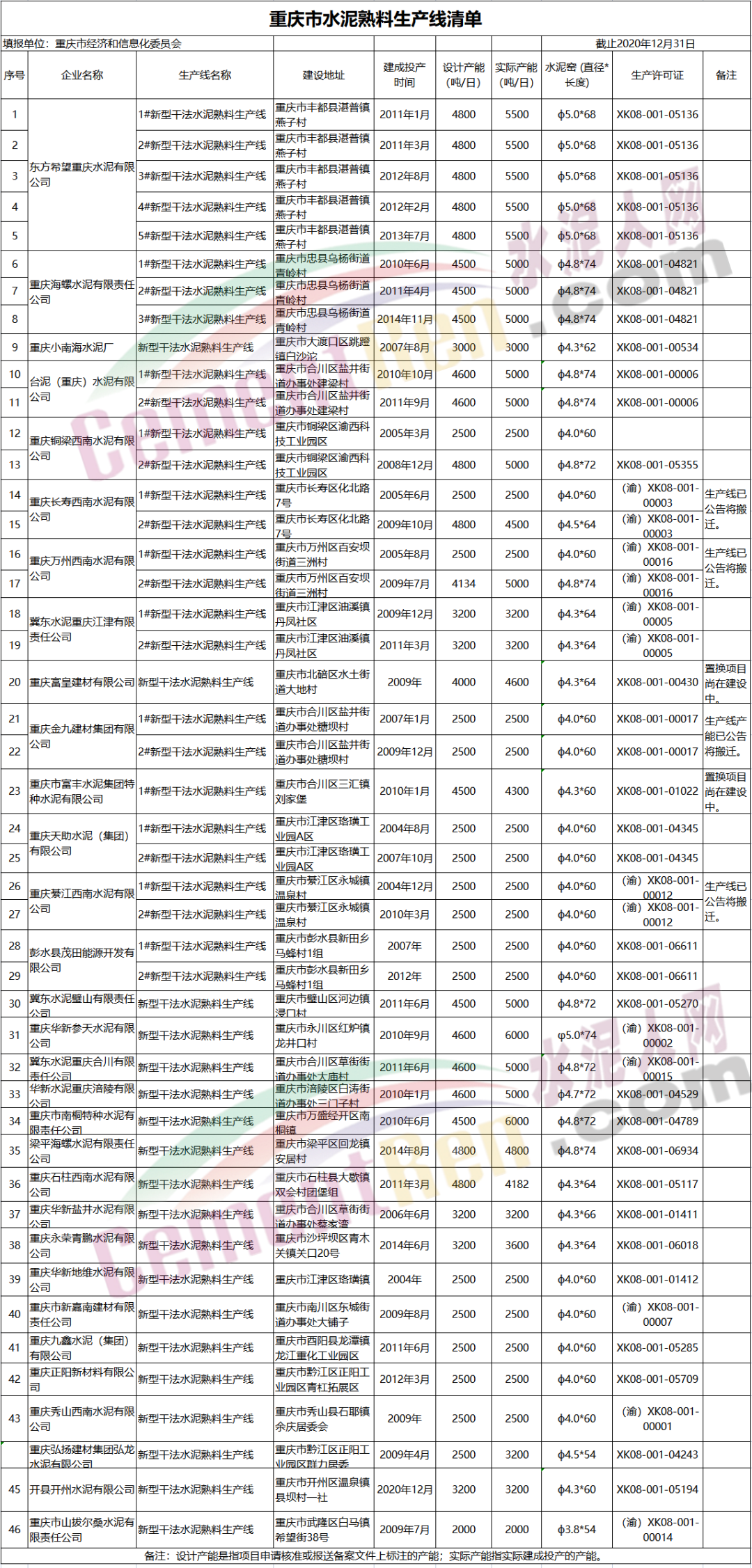 關(guān)于重慶市水泥熟料平板玻璃生產(chǎn)線清單更新的公示