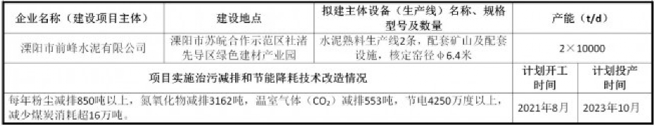 2020年11月,江蘇溧陽市人民政府網(wǎng)站發(fā)布一則產(chǎn)能置換公告,公告內(nèi)容為退出6條生產(chǎn)線,以置換新建兩條10000t/d熟料水泥智能制造二代示范線。