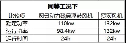 表1:同等工況下愿景動力鼓風(fēng)機(jī)