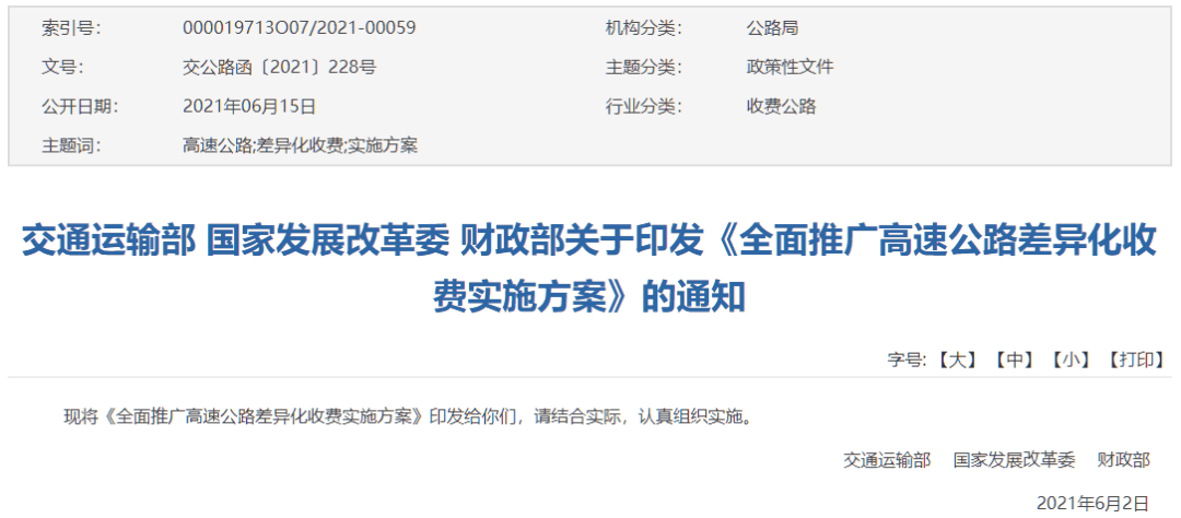 (二)組織實(shí)施階段,2021年9月底前。各地交通運(yùn)輸、發(fā)展改革和財(cái)政主管部門要督促指導(dǎo)高速公路經(jīng)營管理單位,按照省級(jí)人民政府批準(zhǔn)的方案,認(rèn)真組織實(shí)施,切實(shí)做好政策發(fā)布和宣傳解讀、費(fèi)率調(diào)整等相關(guān)工作;結(jié)合收費(fèi)公路車輛通行費(fèi)優(yōu)惠政策調(diào)查月報(bào)制度,按月上報(bào)差異化收費(fèi)政策實(shí)施情況;加強(qiáng)動(dòng)態(tài)跟蹤,及時(shí)妥善解決出現(xiàn)的問題,確保差異化收費(fèi)工作科學(xué)規(guī)范開展,并取得切實(shí)成效。