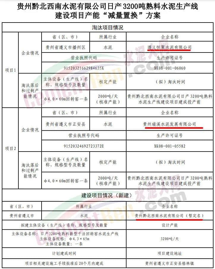 據(jù)水泥人網(wǎng)了解,2018年12月下旬,貴州省工業(yè)和信息化廳發(fā)布關(guān)于關(guān)于貴州黔北西南水泥有限公司日產(chǎn)3200噸 熟料水泥生產(chǎn)線建設(shè)項(xiàng)目產(chǎn)能“減量置換”方案的公示提到,貴州黔北西南水泥有限公司通過(guò)減量置換方式新建一條3200t/d熟料水泥生產(chǎn)線。