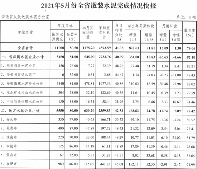 水泥大省5月份散裝水泥完成情況快報!