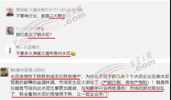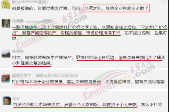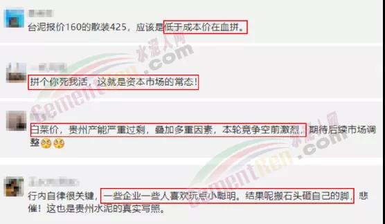 對于臺泥大幅度降價情況,市場中存在各種聲音,有人稱臺泥執(zhí)行的是“市場競爭”,其他企業(yè)則是“價格戰(zhàn)”;也是有人說臺泥是低于成本價在“血拼”;這是白菜價,貴州產(chǎn)能嚴(yán)重過剩,疊加多重因素,本輪競爭空前激烈,期待后續(xù)市場調(diào)整;都是被逼的,區(qū)域過剩嚴(yán)重,而且在臺泥之前,其他企業(yè)早就這么做了。