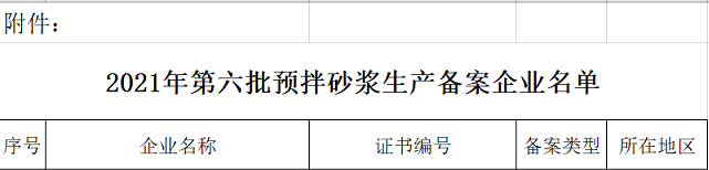 附件:2021年第六批預(yù)拌砂漿生產(chǎn)備案企業(yè)名單