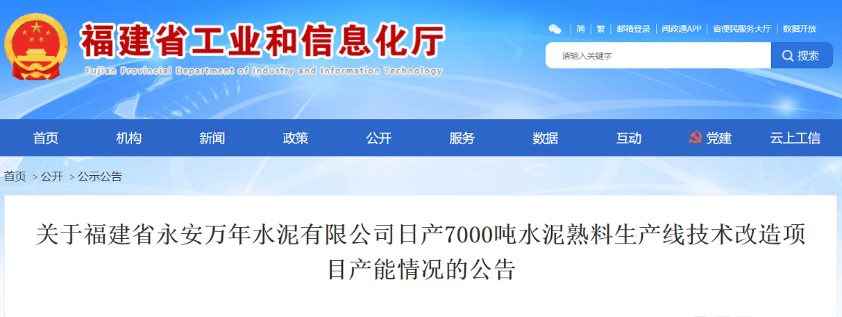 福建省永安萬年水泥有限公司擬拆除整合公司現(xiàn)有的1條日產(chǎn)2500噸和1條日產(chǎn)4500噸水泥熟料生產(chǎn)線,在原廠區(qū)技術(shù)改造建設(shè)1條日產(chǎn)7000噸水泥熟料生產(chǎn)線。根據(jù)《國務(wù)院關(guān)于化解產(chǎn)能嚴重過剩矛盾的指導意見》(國發(fā)〔2013〕41號)和《工業(yè)和信息化部關(guān)于印發(fā)鋼鐵水泥玻璃行業(yè)產(chǎn)能置換實施辦法的通知》(工信部原〔2017〕337號)等有關(guān)要求,現(xiàn)將福建省永安萬年水泥有限公司日產(chǎn)7000噸水泥熟料生產(chǎn)線技術(shù)改造項目產(chǎn)能情況予以公告,歡迎社會公眾進行監(jiān)督。聯(lián)系電話:0591-83613733。