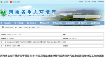 河南省生態(tài)環(huán)境廳辦公室2021年7月1日印發(fā)
