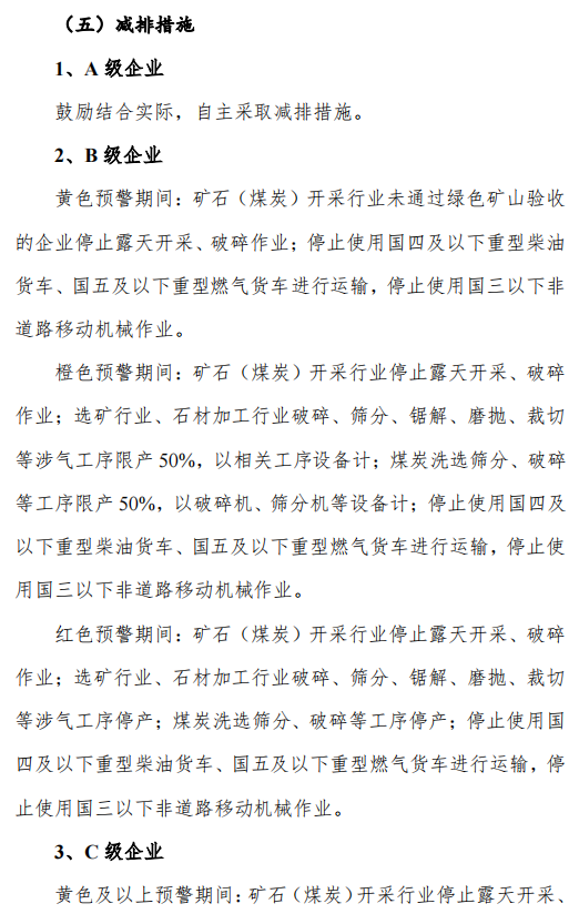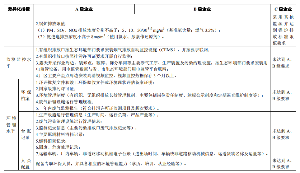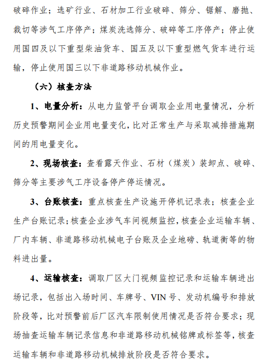 各地要對已開展績效分級的行業(yè),應(yīng)急減排措施應(yīng)嚴(yán)格滿足國家《重污染天氣重點(diǎn)行業(yè)應(yīng)急減排措施制定技術(shù)指南(2020年修訂版)》和省級績效分級有關(guān)文件等要求;對于未開展績效分級的行業(yè),應(yīng)結(jié)合本地應(yīng)急減排量需求明確應(yīng)急減排措施;對于電廠、供暖鍋爐房、小微涉氣企業(yè)等,納入清單,但不強(qiáng)制采取停限產(chǎn)措施,酌情采取交通運(yùn)輸管控措施。揚(yáng)塵源應(yīng)按照揚(yáng)塵污染防治規(guī)范標(biāo)準(zhǔn)明確應(yīng)急減排措施。涉大宗物料運(yùn)輸單位應(yīng)制定應(yīng)急運(yùn)輸管控方案并安裝門禁系統(tǒng)。清單內(nèi)工業(yè)企業(yè)及施工工地等均應(yīng)制定重污染應(yīng)急減排措施“公示牌”,并置于入廠顯眼位置。在重污染天氣預(yù)警期間,要嚴(yán)格落實(shí)應(yīng)急減排清單明確的各項(xiàng)應(yīng)急減排措施,確保可操作、可監(jiān)測、可核查,切實(shí)發(fā)揮減排效應(yīng),保證績效分級工作的權(quán)威性和嚴(yán)肅性。