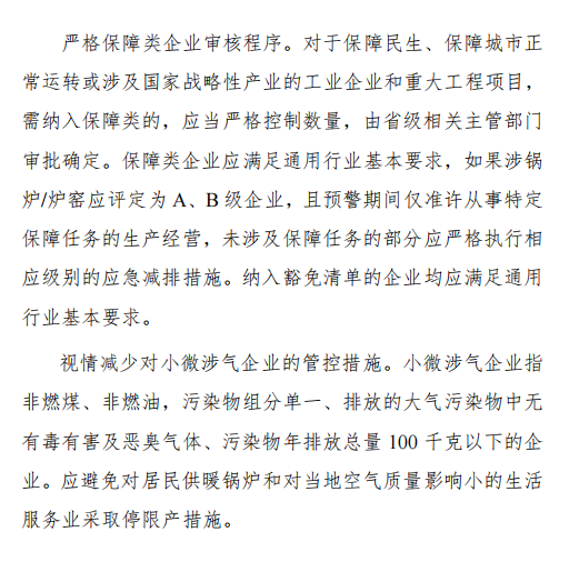 各地要認(rèn)真對保障民生、保障城市正常運(yùn)轉(zhuǎn)或涉及國家戰(zhàn)略性產(chǎn)業(yè)企業(yè)申報(bào)資料進(jìn)行審核和現(xiàn)場核查,確需納入保障類的,應(yīng)當(dāng)嚴(yán)格控制數(shù)量。原則上,對于保障類企業(yè),須達(dá)到國家或河南省重點(diǎn)行業(yè)績效分級B級及以上要求;對達(dá)不到B級及以上要求企業(yè)要實(shí)施重點(diǎn)幫扶,組織專業(yè)技術(shù)人員對其進(jìn)行全面會診、把脈,督促其加快治理進(jìn)度,盡快達(dá)到B級水平。在重污染天氣管控期間,保障類企業(yè)僅準(zhǔn)許從事特定保障任務(wù)的生產(chǎn)經(jīng)營,應(yīng)嚴(yán)格按照重污染天氣應(yīng)急減排清單規(guī)定落實(shí)管控措施,如保障類企業(yè)超出允許生產(chǎn)經(jīng)營范圍、保障類工程未做到綠色施工相關(guān)要求的,一經(jīng)發(fā)現(xiàn),應(yīng)立即移出保障清單。