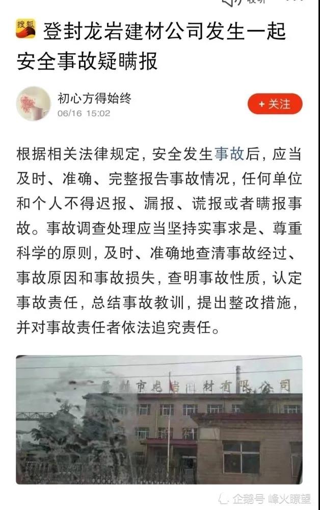 登封發(fā)生一起工傷事故!涉及龍巖建材!