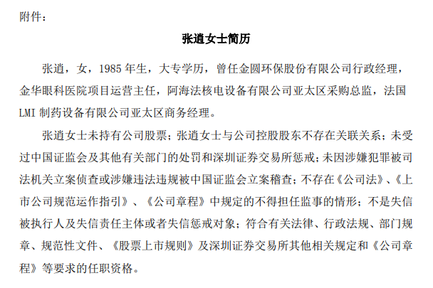 2021年07月05日,公司召開第十屆監(jiān)事會(huì)第三次會(huì)議審議通過了《金圓環(huán)保股份有限公司關(guān)于補(bǔ)選公司監(jiān)事的議案》,同意補(bǔ)選張逍女士為公司第十屆監(jiān)事會(huì)監(jiān)事,任期與本屆監(jiān)事會(huì)任期一致。上述事項(xiàng)尚需提交公司股東大會(huì)審議。