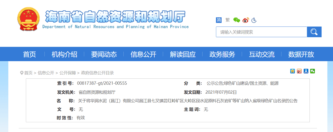 石灰?guī)r礦等礦山納入省級(jí)綠色礦山名錄的公告