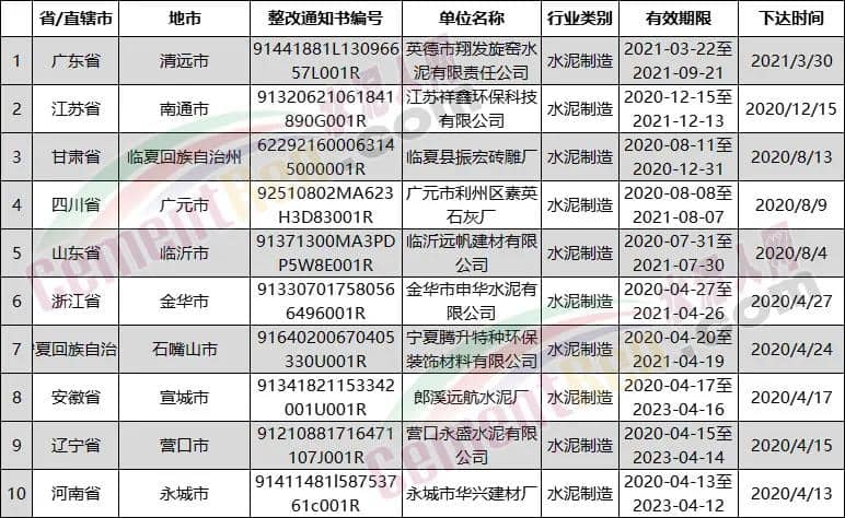 日前,水泥人網(wǎng)從生態(tài)環(huán)境部全國(guó)排污許可證管理信息平臺(tái)了解到,近兩年有多家水泥行業(yè)企業(yè)被要求限期限整改。