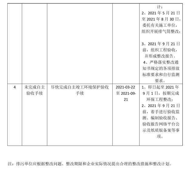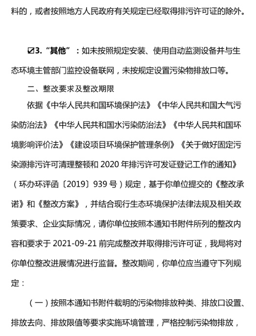 1、即日起至2021年9月1日,按期完成環(huán)保工程整改;