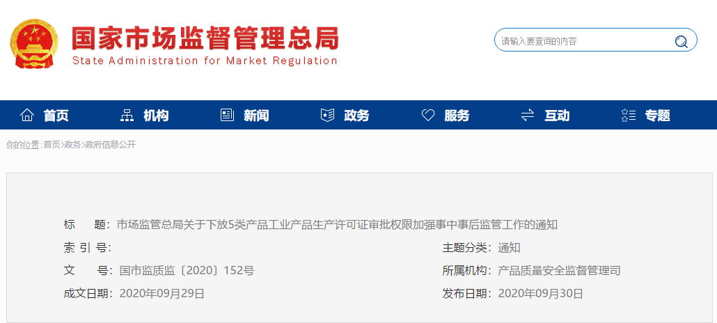 據(jù)水泥人網(wǎng)此前報道,2020年9月30日,國家市場監(jiān)管總局發(fā)布通知,自通知印發(fā)之日起,建筑用鋼筋、水泥等5類產(chǎn)品由省級市場監(jiān)管部門負(fù)責(zé)受理、審查、審批、發(fā)證,總局不再對新申請企業(yè)實施審查、審批。