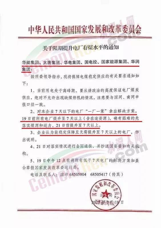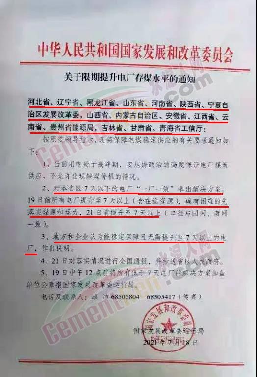 據(jù)水泥人網(wǎng)了解,7月18日,國(guó)家發(fā)展和改革委員會(huì)發(fā)布《關(guān)于限期提升電廠存煤水平的通知》給河北省、遼寧省、黑龍江省、山東省、河南省、陜西省、寧夏自治區(qū)發(fā)展改革委,山西省、內(nèi)蒙古自治區(qū)、安徽省、江西省、云南省、貴州省能源局,吉林省、甘肅省、青海省工信廳要求按照委領(lǐng)導(dǎo)指示,保障電煤穩(wěn)定供。