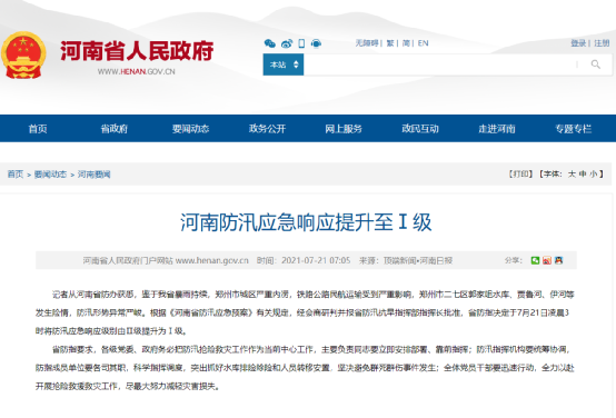 河南防汛應(yīng)急響應(yīng)提升至Ⅰ級(jí)