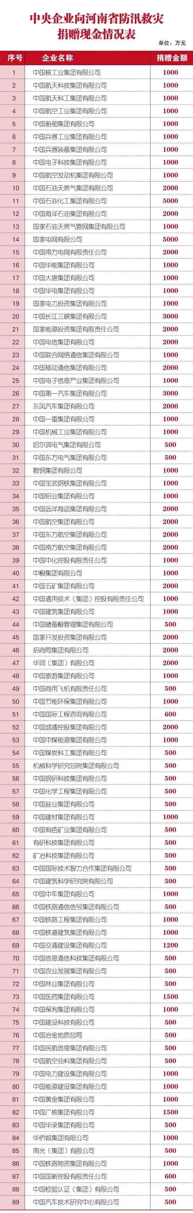 據(jù)國資委消息,國資委和中央企業(yè)全力支援河南省做好汛災(zāi)搶險救援,進一步加大捐贈力度,截至7月22日19點,89家中央企業(yè)累計向河南省捐贈現(xiàn)金達10.44億元。