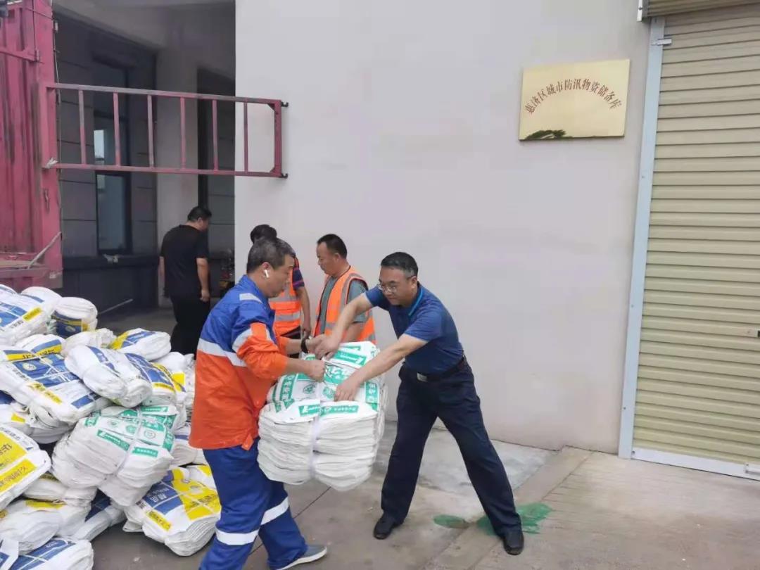 7月21日,得知鄭州市防汛抗旱指揮部,急需防汛裝沙編織袋的信息。根據(jù)中國聯(lián)合水泥防汛工作安排部署,河南中聯(lián)同力材料有限公司緊急組織登封中聯(lián)、新安中聯(lián)、濟源中聯(lián)、黃河同力、平原同力等企業(yè),第一時間籌集抗洪物資