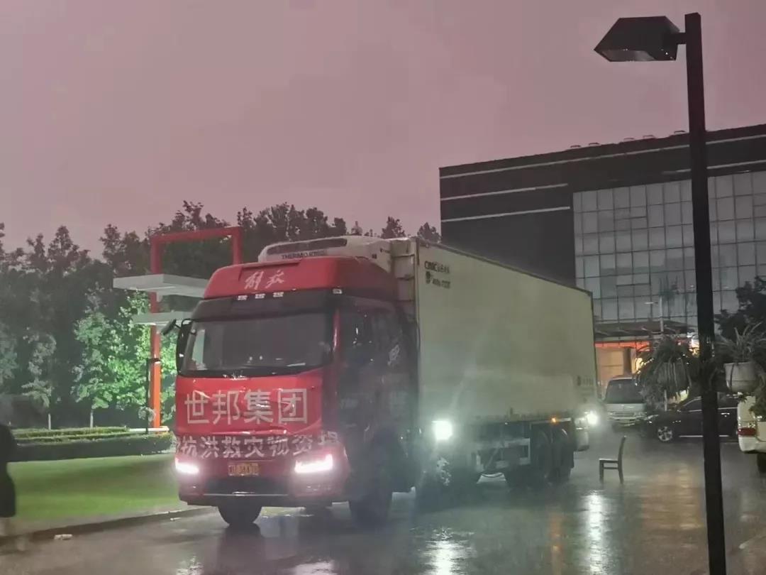 世邦集團滿載救災(zāi)物資的卡車開往災(zāi)區(qū)圖片