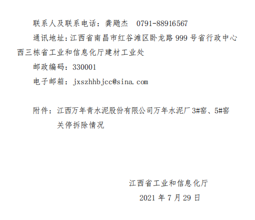 同期,江西省工業(yè)和信息化廳發(fā)布《關(guān)于江西萬年青水泥股份有限公司萬年水泥廠用于8#窯產(chǎn)能置換的3#、5#窯關(guān)停和拆除的公示》稱,按照《江西省工業(yè)和信息化廳關(guān)于江西萬年青水泥股份有限公司萬年水泥廠2×5100t/d水泥熟料生產(chǎn)線產(chǎn)能置換方案公告》(贛工信建材〔2017〕第10號),省建材集團(tuán)所屬江西萬年青水泥股份有限公司萬年水泥廠用3#、5#窯置換的8#窯已建成投產(chǎn),用于產(chǎn)能置換的3#、5#窯已按規(guī)定關(guān)停和拆除。省工業(yè)和信息化廳組織專家對用于8#窯產(chǎn)能置換的3#、5#窯關(guān)停和拆除情況進(jìn)行了現(xiàn)場核驗(yàn)。