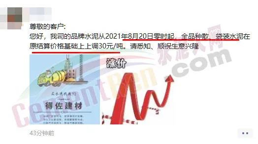 區(qū)域內(nèi)各品牌水泥旗下代理商經(jīng)銷商也紛紛發(fā)布通知,以告知客戶相關(guān)調(diào)價(jià)信息。