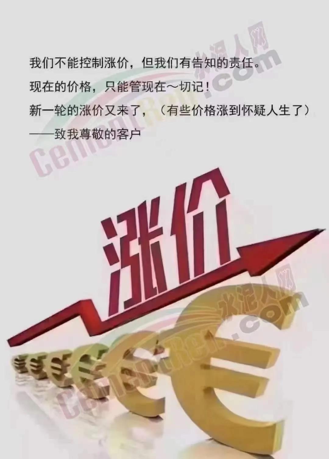 有水泥銷售表示,“我們不能控制漲價(jià),但是我們有告知的責(zé)任。現(xiàn)在的價(jià)格,只能管現(xiàn)在~新一輪的漲價(jià)又來了,有些價(jià)格漲到懷疑人生了!”