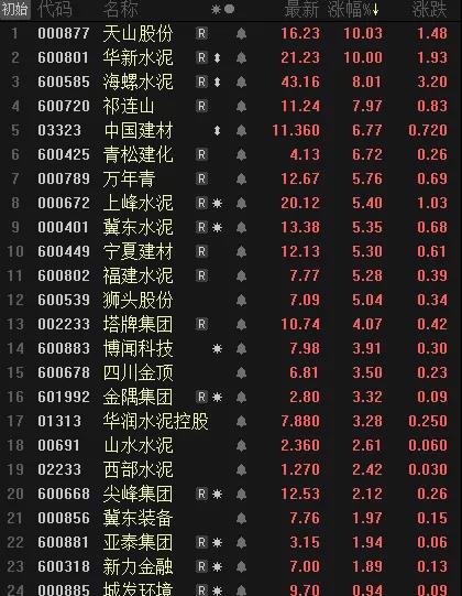 昨日(9月1日),水泥上市公司大爆發(fā),多股出現(xiàn)一字漲停。截止當日收盤天山股份、華新水泥盤中漲停。