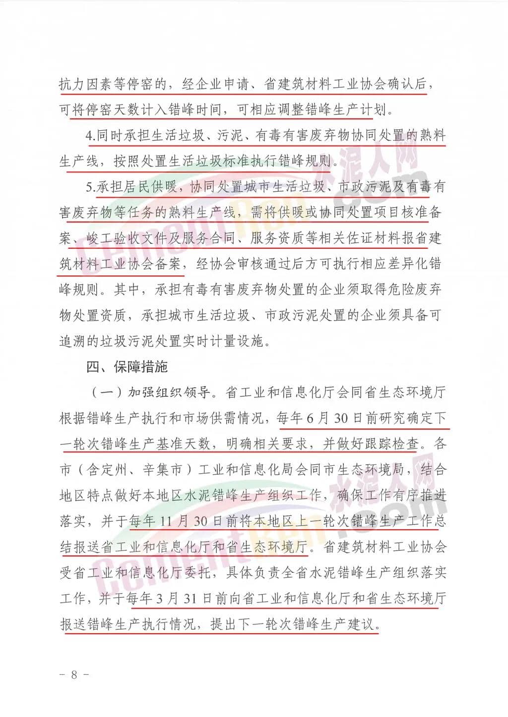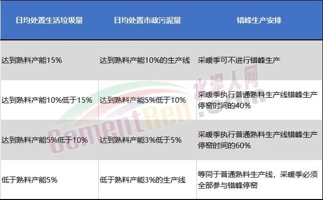 承擔(dān)協(xié)同處置城市生活垃圾及市政污泥等任務(wù)的熟料生產(chǎn)線,在采暖季可不進行錯峰生產(chǎn),但要適當降低水泥生產(chǎn)負荷,實施以量定產(chǎn);在非采暖季正常錯峰生產(chǎn)。