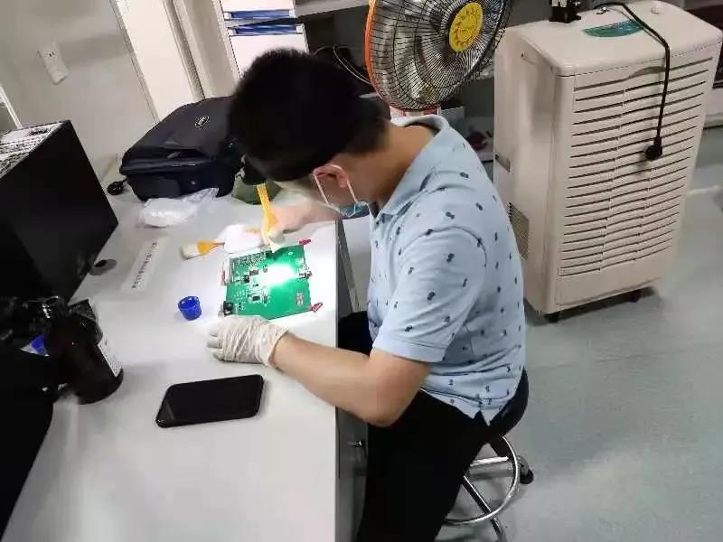 工程師對拆卸下來的線路板進行仔細的吹掃