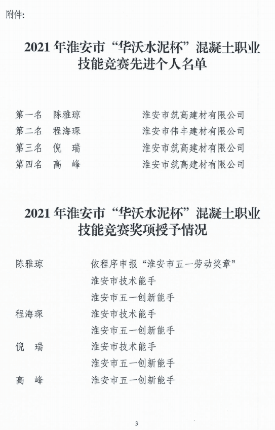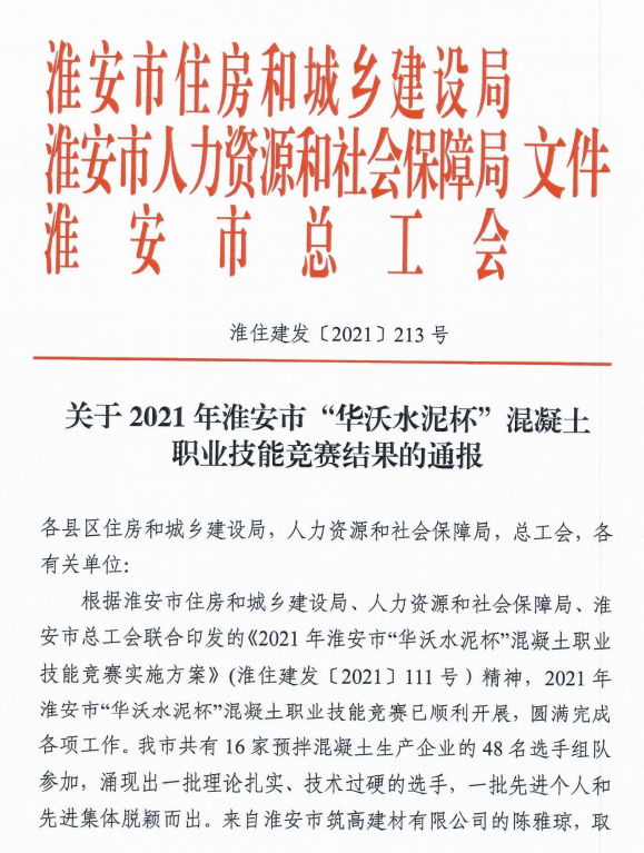 日前,?2021年淮安市“華沃水泥杯”混凝土職業(yè)技能競(jìng)賽已圓滿完成各項(xiàng)工作,共有16家預(yù)拌混凝土生產(chǎn)企業(yè)的48名選手組隊(duì)參加,涌現(xiàn)出一批理論扎實(shí)、技術(shù)過(guò)硬的選手,一批先進(jìn)個(gè)人和先進(jìn)集體脫穎而出。