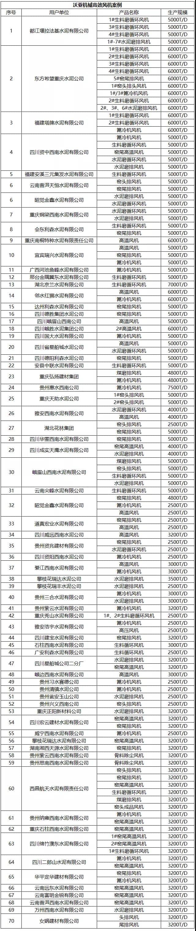 此外,沃亞機械還先后為金隅冀東水泥、東方希望、西南水泥、塔牌水泥、星船城水泥等多個大型水泥企業(yè)提供高效風機改造服務(wù),在推動水泥行業(yè)綠色發(fā)展領(lǐng)域做出了突出貢獻。