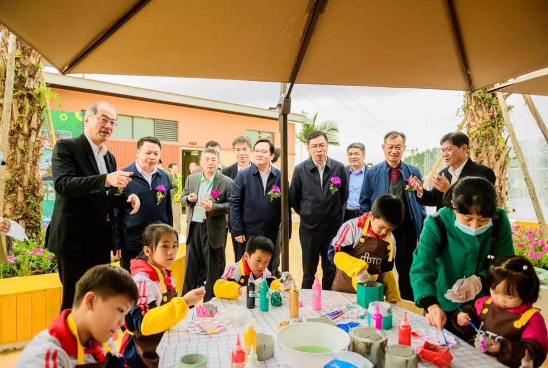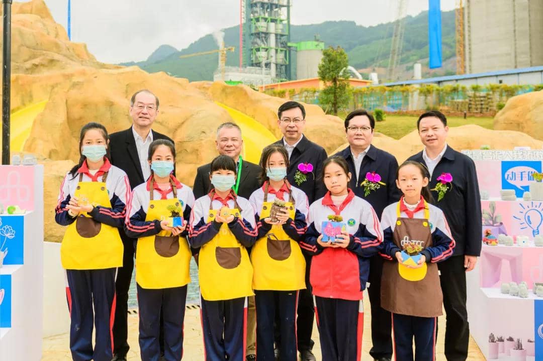 眾嘉賓在臺(tái)泥戲水樂園參觀小學(xué)生在水泥手作工作坊彩繪作