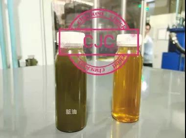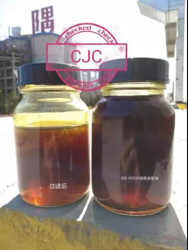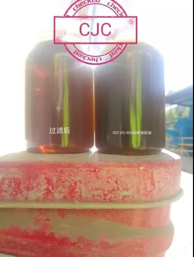由上表可以看出,安裝CJC木質(zhì)纖維精密過濾系統(tǒng)后,僅在線過濾1天時(shí)間,冀東水泥A企業(yè)油老化就被控制住,設(shè)備磨損達(dá)到合格水平。過濾前后油樣對(duì)比圖片如下: